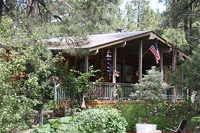 Complete info: http://17235snavajoplace.ePropertySites.com - This home is a balance between a delicate and serene garden mosaic and a bountiful rustic mountain manor. What a great property. The exterior is clad in log timbers amidst majestic Ponderosa pine trees and a spectacular show of perrenial flora and fauna. The massive cathedral peaked patio looks out upon all of natures glory. The newer decks are carefree trex and will last a lifetime. The yard sports a two story shed/playhouse, fenced dog run and ample parking. The interior is also very beautiful. The high ceilings, multiple energy efficient windows and open floor plan bring the feel of a much larger home. Open kitchen faces living area and has a breakfast bar and island kitchen. Large pantry and hanging central cook rack. White appliances and adjacent eat-in dining area. Separate laundry room with access to side yard and dog run. Large bedrooms, two full sized bathrooms and plenty of room for guests.