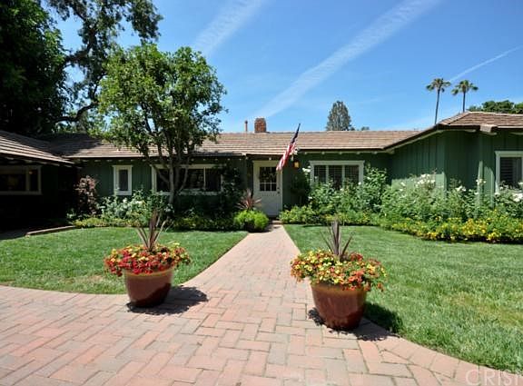 Beautifully situated in a prime Amestoy Estates location, this romantic and charming single story traditional ranch style home sits on an almost 21,000 sq. ft. lot at the end of a quiet cul-de-sac. Great curb appeal and magical grounds include grassy areas, a swimmers pool, flagstone decking, specimen trees, lush landscaping with abundant flowers and gardens. This property presents endless potential for remodeling, expansion, or for building a grand new estate. Set back from the street with privacy, there is a paver-tiled driveway leading to the house which has approximately 2105 sq. ft. There are three bedrooms, an office/study, two bathrooms, an open living room with dining area, and family room with brick fireplace and vaulted beamed ceilings. The kitchen has an eating area, newer stainless steel appliances and picture windows that overlook the rear grounds. There is a breezeway between the house and two car garage. Other features include Plantation shutters, built-in cabinets and bookcases, and dual zoned HVAC. Located in the highly acclaimed Encino Avenue Elementary Charter School district, a school for advanced studies, (942 API), with close proximity to Ventura Boulevard shopping and restaurants.