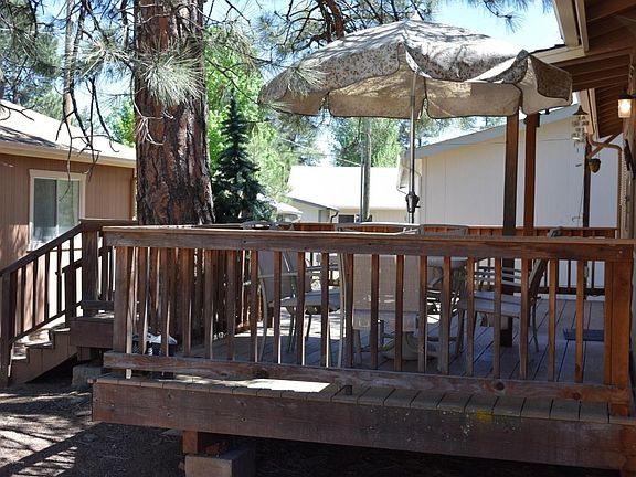 You don't want to miss this one. Spacious manufactured home, large lot and located on a quiet cul-de-sac. Open living and dining area. Easy to work in kitchen with all the appliances. Two big bedrooms and two baths. One bath is remodeled. Lots of closet space in the master. Actually, there's storage spaces everywhere. Really nice private deck off the back. Detached garage that also has a private apartment with a living area, bedroom and bath. Fully furnished and move-in ready.