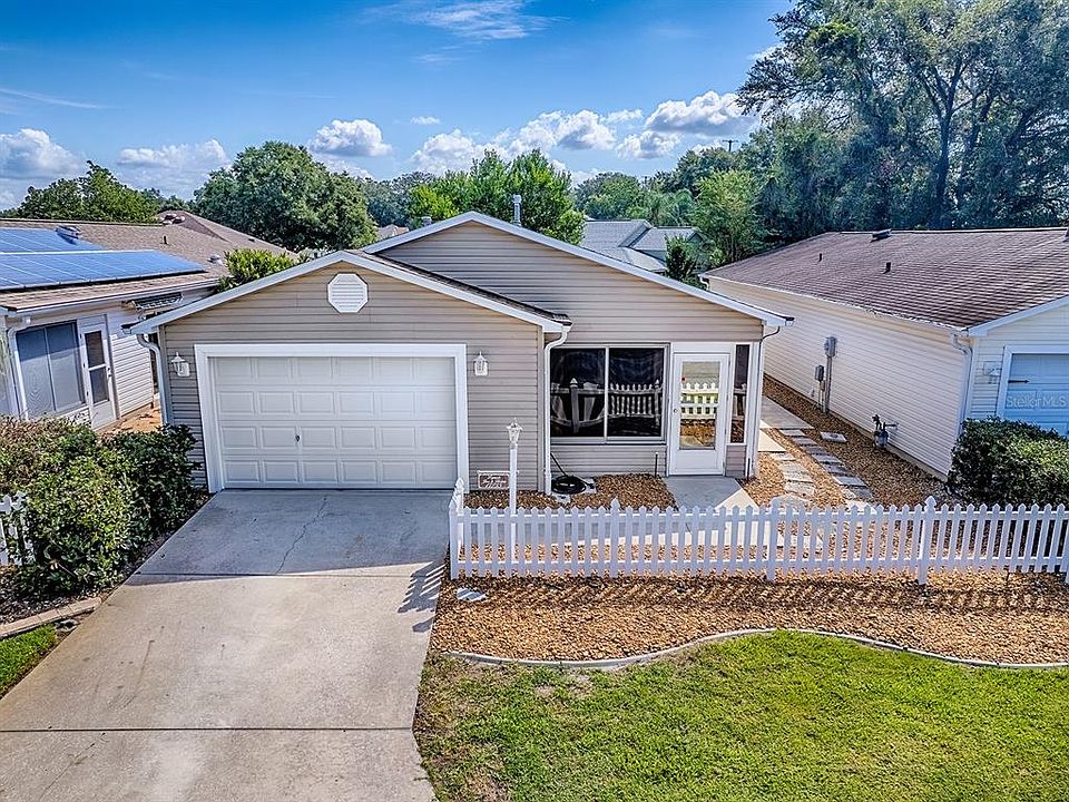 ~•Bond is PAID•~ Perfect for Sunny Florida Living or an Investment! This PRISTINE 2 bed, 2 bath CABOT COVE patio villa in the village of Woodbury offers a PRIME OPPORTUNITY for buyers looking for a LOW-MAINTENANCE home and landscaping, or an investment property in The Villages! You'll also have Peace of Mind with the GENERAC WHOLE-HOUSE GENERATOR. Enjoy easy living with Beautiful LAMINATE & TILE Flooring Throughout (no carpet!), PLANTATION SHUTTERS Throughout. The kitchen has been renovated by DOC'S Restoration with GRANITE Countertops, Beautiful Cabinetry, Added PANTRY, GAS Range, STAINLESS Fridge, Stove and Dishwasher. NEWER SLIDING GLASS Doors w/BUILT-IN Blinds Leading to the Side Patio! The spacious primary bedroom features a WALK-IN closet and EN-SUITE bath with GRANITE Countertops and Walk-In Shower. The Guest Room has a MURPHY BED and Built-In Closet - creating a PERFECT SPACE to double as a Guest Room and an Office! The Roomy ENCLOSED LANAI with Wood-Look TILE Flooring is a perfect place to relax and enjoy a cup of coffee. Outdoor living is a BREEZE on the side patio with LOW-MAINTENANCE Stone Landscaping. ~•Roof New in 2017•~ ~•HVAC New in 2018•~ New Windows in 2017, and the Hot Water Heater was replaced approx. 9 years ago. Move in, relax, and start to enjoy your own slice of The Villages lifestyle today! Call today for a Private Showing. Located in the Village of WOODBURY this is a Great location that is EASY IN and OUT of The Villages w/LIGHT traffic even in Peak Season! Close to the Postal Station, Nancy Lopez Country Club, Glenview Country Club, Springdale Pool and Mulberry Grove Rec Center. Shopping, Banking, Restaurants and the VA Center are nearby! Tax line reflects property taxes only and is estimated. Bond is PAID. Current Maintenance Assessment is $518.10/year. Current Fire Dept. $199.91/year. Note: Square footage information is taken from the Public Record and is deemed reliable, but not guaranteed. Room and garage dimensions are approximate and estimated: buyer to verify. Note: Furniture items are for staging and are available directly from the furniture store, decorative items are for staging purposes only and do not convey.