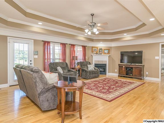 Situated on large corner lot, this 3br/3ba home features 3 car garage + 2 car detached garage w/ no neighbors behind! Home features hardwood flooring throughout (no carpet!) Huge family room w/ fireplace is a great place for family gatherings & entertaining. Kitchen is spacious & sunny & features an abundance of cabinet & counter space & opens to breakfast rm. Spacious master suite w/ trey ceiling & glamour bathroom w/ spa-like, oversized tiled walk-in shower. 3 car garage w/ storm shelter & heated/cooled office. 26x24 Detached workshop features attic storage area. Relax in the fall months to come on large back patio w/ views of open fields & woods behind the home.