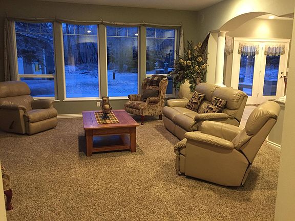 Beautiful custom built stucco home on almost 2 acres of peaceful & private property. There is a 40X40 detached shop/garage w/12' door plus a 750 sq ft attached garage! Underground sprinkler system, new furnace, newer hot water tank, gas fireplace, custom kitchen with granite counters as well as in the bathrooms & office, built in cabinets in LR & in the family/theater room and so much more!