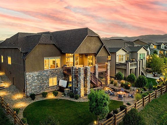 Welcome to picturesque NW Arvada and the sought-after community of Leyden Rock. This Meritage, ranch style home features 4 bedrooms, an office, open floor plan, a finished/walkout basement and stunning views! Located at the end of a cul-de-sac, the views stretch from the mountains, over the open space and allow you to see all the way to downtown! Step inside and the most discerning buyer will appreciate the wood floors, high ceilings and upgraded features. Two ample sized bedrooms are located on the front of the house and share a large, full, bath with dual sinks and separate shower/toilet room. The office is generously sized and complemented by French Doors. The Laundry room, with utility sink is conveniently located off the owners entry from the garage. The open floor plan and plenty of windows will draw you into the Living Room and Kitchen all looking out over the back deck and views of the mountains and downtown. The Chef's kitchen is any home cook's dream and features all stainless steel appliances, chef's hood and so much counter and cabinet space! The Primary Suite enjoys the same views and is accented by a tray ceiling and large windows. Escape the day in your spa-like 5pc bath with soaking tub, large shower, His and Hers Closets and Vanities. Downstairs enjoy the massive walk-out basement with wet bar, large bedroom, full bath and plenty of storage place. Take a 'staycation' in your own back yard while enjoying the views from the hot tub or fire pit.