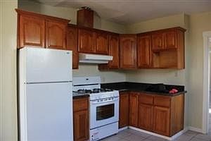 New wall to wall carpet. New granite counter in big kitchen, new gas stove & hood,and refrigerator. Fresh paint in and out. Laundry hooks ups for gas dryer. One car garage. Gas wall heaters. Garbage is included.