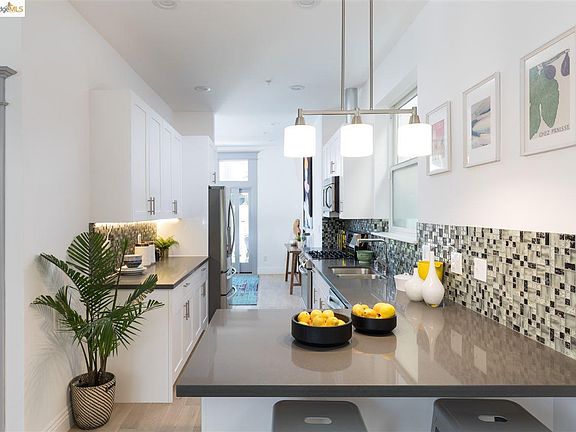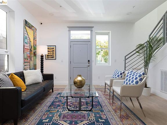 Built in 2017, this Victorian inspired modern gem is just 6 blocks from West Oakland BART. This 3 bedroom, 2 ½ bath ultra-livable home features an open floor plan with great indoor-outdoor flow and lots of natural light. A flexible configuration allows for a formal dining room or a den/office. Create culinary masterpieces for your friends and family in the chef's kitchen with stainless appliances while they admire your hardwood floors, high ceilings, and a private back yard that's perfect for entertaining. Stay close to home in the neighborhood coffee houses or enjoy the easy access to everything that BART has to offer. This immaculate retreat is a joy to come home to at the end of the day. Twilight tour 7/18, 5:30 - 7:30. Open Saturday and Sunday 2-4:30.