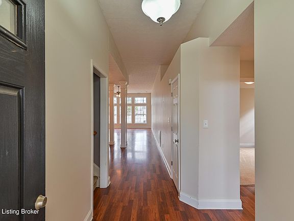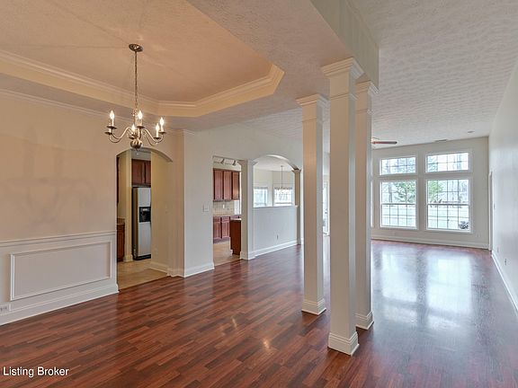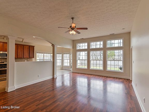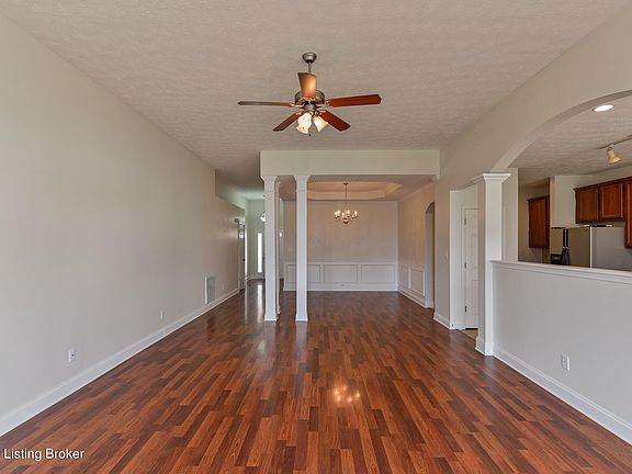 This contemporary style home located in Flat Rock Ridge offers a magnificent open floor plan design. Upon entering, you are greeted by a formal dining room with an updated lighting fixture, inverted ceilings, decorative columns, chair rail, and wainscoting. The great room features floor to ceiling windows providing abundant natural light throughout the kitchen and living room. The unique arch that opens from the living room to the kitchen creates a wonderful setup for families and adds an elegant touch to the open floor plan design. The kitchen is equipped with ample countertop space, a gas range, stainless appliances, multi-level cabinets and a cozy breakfast nook. A door separates the generous sized laundry room and garage entrance from the rest of the kitchen. The first floor primary bedroom provides tranquil wooded views and is accompanied by a spacious walk-in closet, garden bathtub, and a separate walk-in shower. Two bedrooms separated by a full bath complete the first floor. The upstairs consists of an immense loft-like room, which can be used as a fourth bedroom, guest suite, or media/play room. This beautiful brick home features an attached two car garage. The backyard has a full privacy fence with two gate openings to exit the backyard. The HVAC system was cleaned in the last six months and all downstairs rooms were painted in December 2020. This is a wonderful opportunity to purchase a 4 bedroom and 2 full bath home located within walking distance to Long Run Golf Course and only minutes from the shopping and restaurants along Shelbyville Rd.
