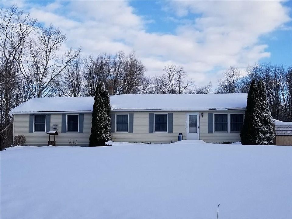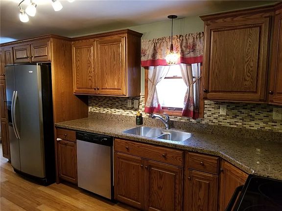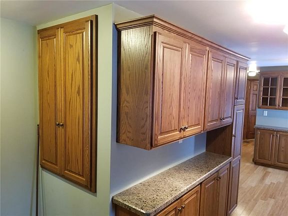 You'll enjoy whipping up breakfast in the charming kitchen of this 3 bedroom, 1 bath ranch home. The custom built kitchen features solid oak kitchen cabinets with pull out pantry shelves. Built in hutch in the dining area matches the kitchen cabinets. You will love the contrast between the oak cabinets and the solid bamboo wood flooring throughout the kitchen and dining area. Relax and enjoy the built in fireplace in the large master bedroom. This ranch features an area for an office and additional room for just relaxing and enjoying a good book. This ranch sits on a 1 acre corner lot and has a detached 3 bay building to the north side of the house. 2 bays for parking and one bay can be used as a shop or additional parking. Plenty of area in the full basement for a family / rec room.