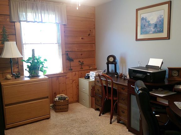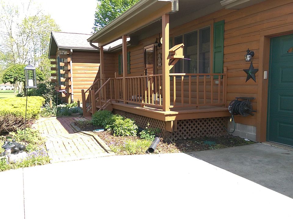 Quality log home with excellent landscaping, three bedroom ranch home with two full baths, lower level recreation room,walk out basement to garage. Two car attached garage with and additional 24 x 32 pole barn for garage space. Two sheds. Whole house alarm system that also includes septic lift pump and sump pump. All electric home with a generator back up. Generator fueled by propane. large front porch and back porch with brick patio. The landscaping at this home is fabulous. This home is move in ready.