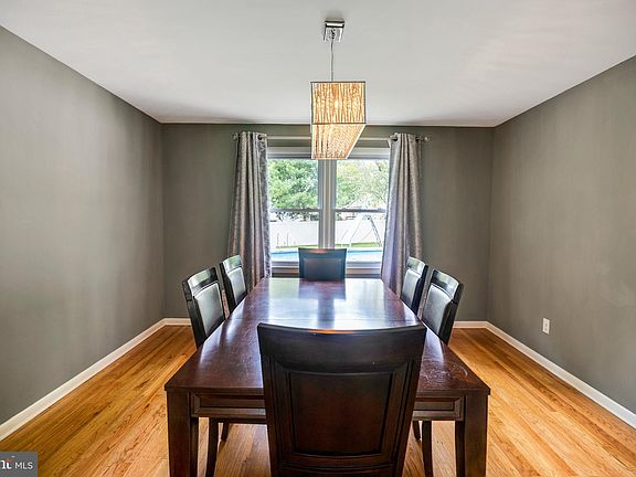 Step into this magnificent 2834-square-foot residence boasting 4 bedrooms and 2 ½ baths, nestled in the heart of the sought-after Woodcrest Community. Embraced by lush greens and near a surrounding golf course, this home offers not only elegance but also convenience, with swift access to Route 561 and 295. Upon entering, you'll be greeted by a formal living room and dining room, both adorned with stunning hardwood floors. The dining room is graced by a captivating, sparkling chandelier. The eat-in kitchen stands as a culinary haven, featuring an ample expanse of counter space, white raised panel cabinets crowned with intricate molding, granite countertops, a glass tile backsplash, a suite of modern appliances including a microwave and a 5-burner self-cleaning gas range, a newer dishwasher, refrigerator, double stainless steel sink, a ceiling fan, a disposal, a pantry closet, and a tiled floor. Sunlight dances into the kitchen through a glass sliding door that ushers you to a sprawling 30 x 16 deck overlooking a refreshing in-ground pool. Adjacent to the kitchen, the family room offers comfort and warmth, highlighted by a brick wood-burning fireplace, recessed lighting, and the same exquisite hardwood flooring. The main level also features a convenient powder room and a laundry room furnished with a front-loading washer and dryer, a utility tub, a closet, newer flooring, and an exterior door for easy access. Ascending to the upper level, you'll encounter the expansive 29 x 15 primary owner's suite bedroom, a true retreat. Enhanced by hardwood floors, recessed lighting, and a ceiling fan, it encompasses a sitting area and dual closets—one of which is a spacious walk-in. The en-suite primary owner's bathroom is a vision of elegance, adorned with tiled floors and walls in the stall shower, a pedestal sink, recessed lights, and an additional closet. Three more generously sized bedrooms, each boasting hardwood floors, ceiling fans, and ample closets, complete the upper level. A two-room style main bath is thoughtfully designed, featuring a tub/shower combination and a vanity, along with a separate sink dressing area and closet. Descending to the fully finished basement, you'll find a space transformed for entertainment and relaxation. The wet bar area, graced by newer tile flooring, is surrounded by closets and a zone for games and TV viewing. The two-car garage has been insulated, and drywalled, adding to the home's overall allure. Notable updates include a modern irrigation system, a newer vinyl privacy fence, an newer hot water heater, solar panels and extremely low electric bills, the refinement of hardwood floors through sanding and refinishing, and upgraded PBC piping for the pool filter. All of this is set on a professionally landscaped corner lot, adorned with meticulously trimmed trees and shrubs, elevating the curb appeal of this splendid home.