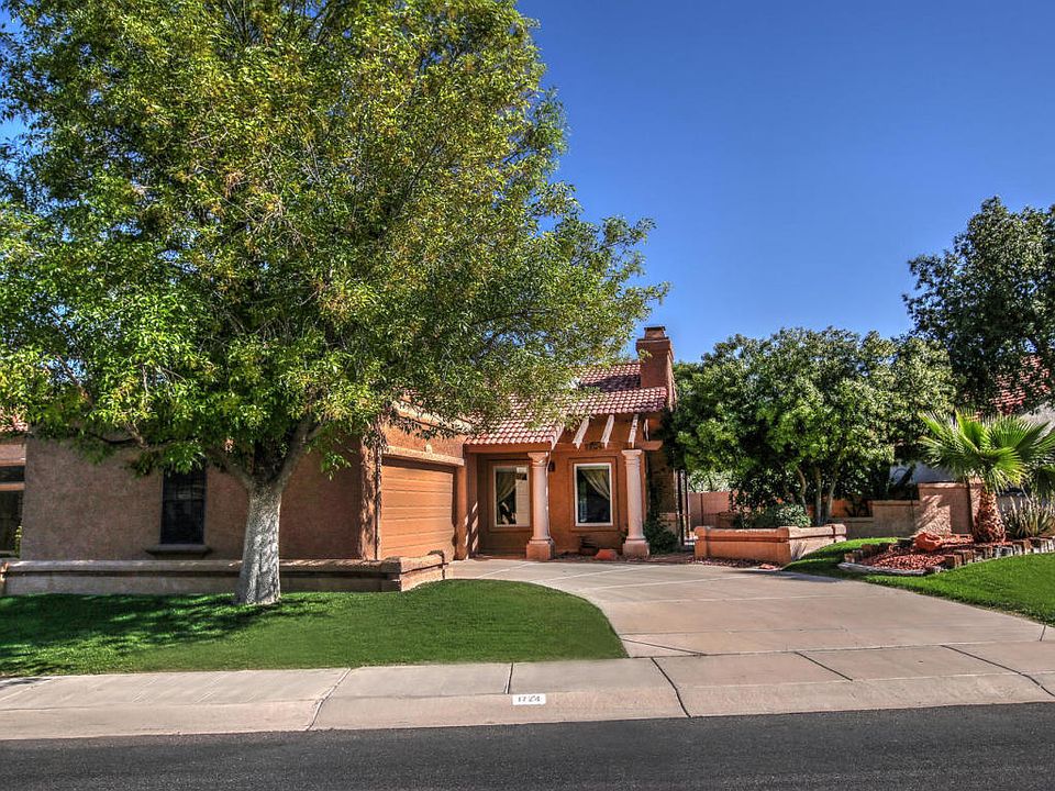Truly Turn-Key! Fully Furnished Gorgeously updated Waterfront home on one level in desirable Chandler Ranch. Enter to light and bright vaulted great room with ceiling fan, skylight, fireplace & sliding glass door to side yard. Remodeled kitchen boasts neutral tile flooring, stainless appliances, upgraded lighting package, maple cabinets, reverse osmosis system and additional slider to entertainer's patio and private in-ground spa with lake view! Master suite features sliding glass door to backyard oasis, decorator niche & recessed lighting, double sinks at master bath, all tile shower, linen closet and upgraded vanity lighting. Additional full bath with tile shower & flooring and newer plumbing. Second bedroom offers generous walk-in closet and slider to private patio.