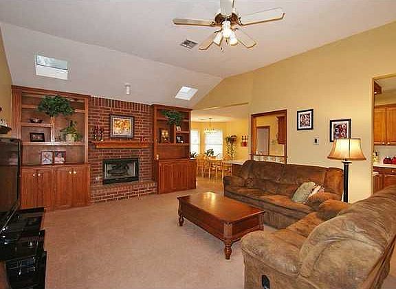4 Beds, 2 full baths, + Study, 2 car garage attached and fenced yard. New tile in kitchen, dining and both baths, large living with ceiling fan, fireplace and buil-in bookcase. All rooms have ceiling fans, MIL plan, Great Master bedroom is very large, master bath has separate shower and tub and walk-in closets. New roof in October 2009, pantry in kitchen, large kitchen with breakfast bar and lots of cabinets and counter tops. Security alarm and great neighborhood in Edmond. Built in 1994 and approximately 1747 sq feet, mol. For more information or showing call Conne at 405-826-2226 or 405-359-8700