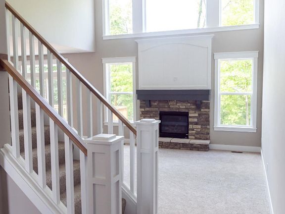 This lovely 2 story home is another beautiful Buffum home.4 bedrooms (includes large bonus room/bedroom) 2.5 bath, 3-stall garage. Open concept floor plan, kitchen wrapped in gorgeous cabinetry, quartz counter tops, hood vent, large snack bar island, wood floors and stainless appliance package. Adjoining dining room, spacious great room with gas fireplace, custom mantle and exterior stone, with LARGE windows. Mudroom area with built-in lockers, 1/2 bath, den, and laundry on main floor. Large Master Suite with tray ceilings, master bath with his/her vanity, custom walk-in tile shower, private toilet area and a large closet. 3 bedrooms and full bath on 2nd floor. Lower level is a daylight with future family room, office, bedroom, full bath, and mechanical room.