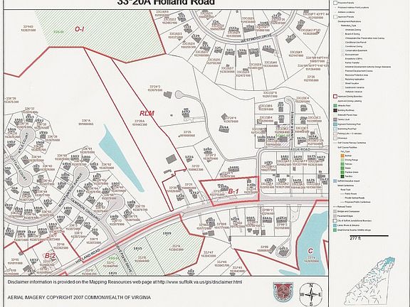 Why build your dream home on a small lot in a crowded neighborhood, when you can have that home on a beautful 5.48 acre lot, only 1/2 mile from Rt. 58 Bypass and 8 minutes from downtown Suffolk. Your home would be atop a sloping hill, rolling downward toward Holland Road with a manicured retention pond on the neighboring property. Must see to really appreciate. You won't have to worry about others building near you as this is the last lot for sale in the area. There is 25 foot driveway easement/frontage. Water and sewer lines run down Holland Road or put in your own well and septic system. The trees in the area of the building site are young and easily removed. Property is on Suffolk Tax Map: 33-20A. Last physical survey done 02/24/1998. Zoning is "RLM" or residential low medium density. No homeowner's association. City of Suffolk is in the process of widening Holland Road which will probably take out the two houses between the road and the front of the property. This is a great investment for current or future build.