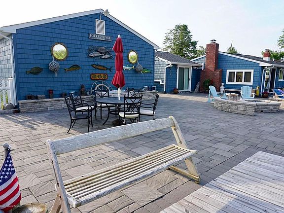 Fantastic Nautical Oasis is calling for new owners to enjoy its beauty and the nature surrounding it year round or seasonally! Sprawling ranch backs to deep natural lagoon across from 70-acre preserve. Only 5 minutes to open bay. Room for large boats and water toys at lighted dock with 120 ft of wood bulkhead only 8 years old, complete with fish cleaning station. Full pavered patio the width of property with fire pit for chilly nights, outdoor shower and more. Plentiful space for outdoor living at its best! Inside youll find large living area with wood-burning fireplace and beamed ceilings and extra wide custom sliders to the patio. Eat-in kitchen has been updated and has great view of water and preserved land beyond.