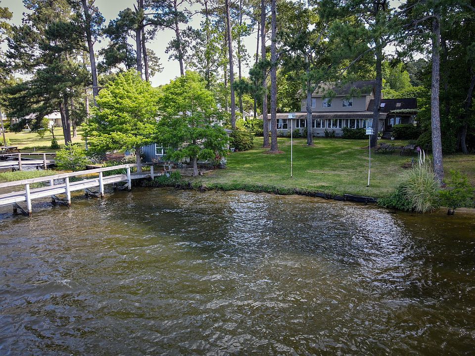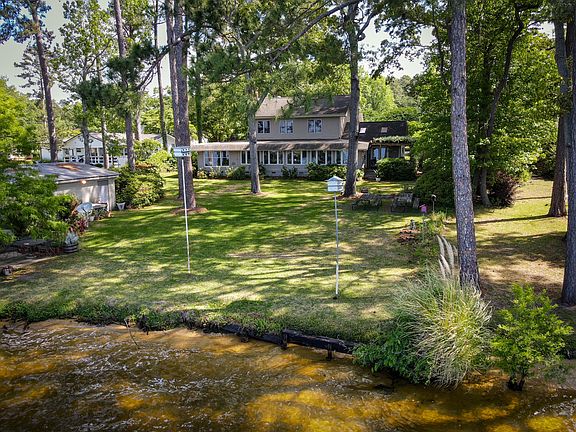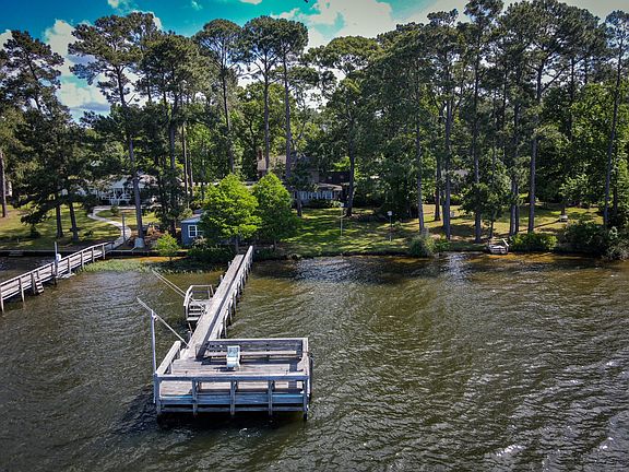 Estate Sale! Remarkable home located on DEEDED WATERFRONT lot on Wyboo, with ''big water'' views. This 4-bedroom 2.5 bath home has a gorgeous waterfront lot with a dock. This home offers an attached 2-car garage. A 715 sq ft enclosed, heated and air-conditioned porch adds to the living area inside the home. The spacious primary suite, located on first floor, includes 3 closets, an ensuite bathroom and an additional walk-in closet beyond the primary ensuite bathroom. The kitchen has a center island with Corian counter tops and plenty of cabinet space. This property includes a boat house/workshop located at waterfront, and a utility shed located near front yard. Home is being sold ''AS IS ONLY'' but has so much charm and potential. A must see! Home warranty included!