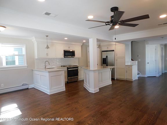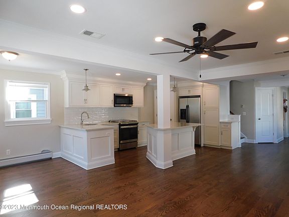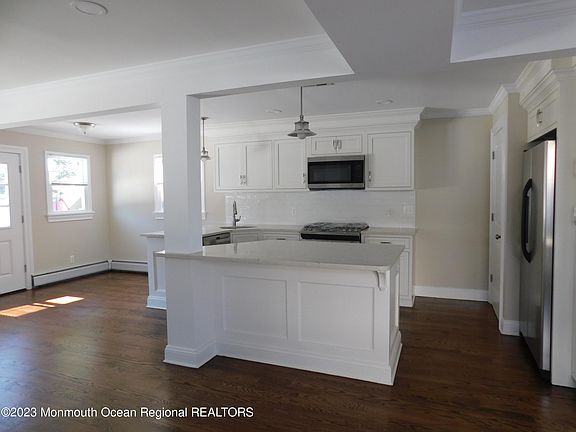 LAKE COMO - COLONIAL - Total renovation that exudes fine and meticulous workmanship . Upgrades to modern farmhouse style include the following : Brand new kitchen with shaker cabinets, granite countertops , hardwood floors, pull down attic , baseboard heat , Central A/C. Stunning master bath with shower stall , ceramic tile . Beautiful vanities with drop in sinks , well appointed fixtures . Home has full basement , garage . The site is blocks away to beaches , town , shopping & marina.