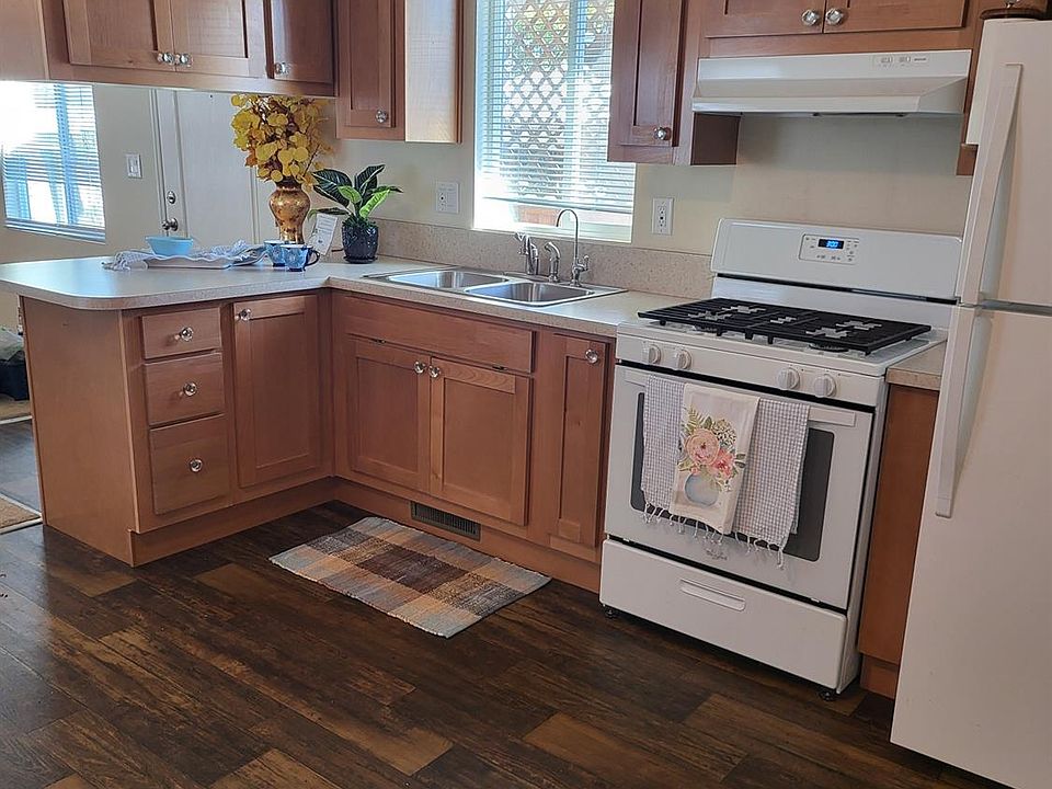 Age 55+ park. A warm and inviting mobile home, lovingly cared for by one owner. This 2016 model has a new-home feel & shows beautifully. Light & airy, good storage. Kitchen is large with good work space and nice appliances. Under-sink water filtration system (owned), a powerful but not obtrusive TV antennae, a large storage shed on a concrete pad, refrigerator, and washer/dryer are all included. Covered 2-car carport. An inviting large covered front porch/deck extends to a very private, roomy side yard w/concrete patio, garden featuring a lovely bearing orange tree. Fenced yard safe for pet. Wonderful for entertaining or relaxing. Laundry area is ideally located central to the bedrooms and bathroom, with a large cabinet for supplies & storage. Shower has seating & hand-held spray. Park is 55+ only, allows 1 pet up to 25 lbs. (some breeds not allowed). Clubhouse features activities, pool, spa, kitchen & pool table. Community garden area, carwash and laundry facility. Park is walking distance to shopping. dining, banking, and other community facilities. 5 minutes to Old Town Clovis. Retirement living at its best!