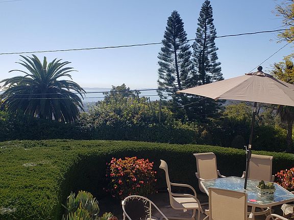 Charming cottage in a super location on the upper Riviera near the El Encanto Hotel. This 2 bedroom plus den home (or 3rd bedroom) has hardwood floors, fresh paint, air conditioning, a fireplace in the living room, and a view of the city and ocean. At about 1175 square feet it is cozy and very livable at the same time. There are stone patios around the view side of the house (ocean/city views), a wood deck behind, and high on the hill above the house (accessed by a small path) there is a stone patio with an expansive view of the city and ocean. The kitchen features granite counters, Sub-Zero refrigerator, new Bosch dishwasher and Thermador Appliances. No pets, no smoking, excellent credit and references are required. $6495 per month. First, last and security deposit required. 1 year lease minimum. No pets, no smoking. Total move in cost is 3 times the monthly rent (first/last/security deposit). Owner pays water and gardener.