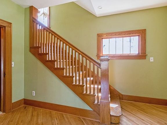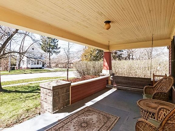 High ceilings and gleaming floors make this 1920's home a dream. Nice surprises include new central air and water heater, new storm doors and gutters. Two grand wood stairways make this a unique home. Fabulous four stall garage in back! There are four bedrooms on the second floor and a walk up attic. The original beauty shines through. Foam insulation in attic, basement walls, and garage. All bathrooms refinished with subway tile. Walk in closet in Master and tile walk in shower in master bath.