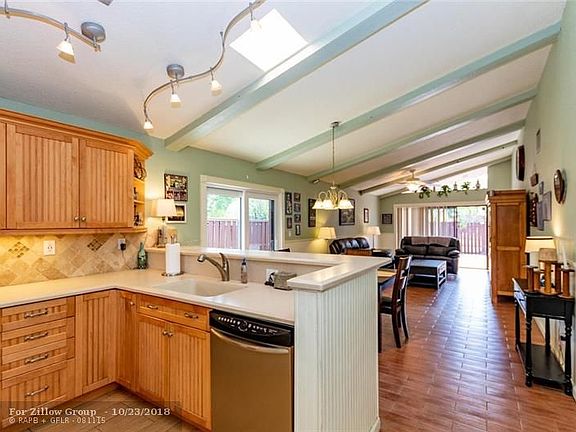 Diamond in the rough! This beautiful corner unit in Omega Villas Village 3 boasts impact windows, porcelain wood floors, and wainscoting throughout which gives a very New England feel. High ceilings allow natural light to flow through giving the space. The living area features both a dining room and a breakfast bar- perfect for entertaining. Newer appliances, including washer and dryer in the unit (as opposed to outside the unit). Home features custom built office that overlooks the front patio. Yard features newer pavers and additional storage space, to be added to the list of features that truly differentiate this townhouse from the rest. This home is 15 minutes to Westfield-Broward Mall or Plantation General Hospital and 30 Minutes from FL and beaches.