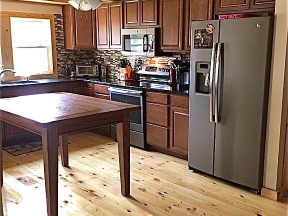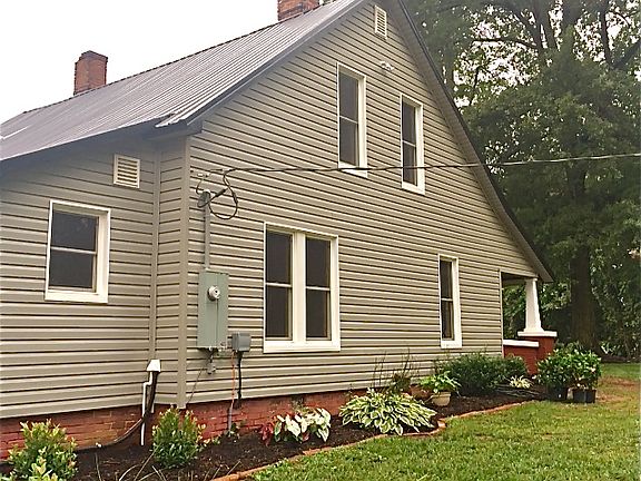Charming Farmhouse, originally built in 1921, completely remodeled in 2014. 3 bedrooms, the master suite is upstairs with sitting areas and bonus room perfect for an office. Master offers 2 large walk-in closets and exposed brick art niches. Knotty pine wood flooring throughout home. Open concept in living, kitchen and dining areas. Rough-sawn wood beams compliment the rustic and updated appeal of the home. Large, fenced outdoor space with pergola over deck and gravel fire-pit. Detached 2-car garage built in 2015. Enjoy sunsets from the front porch that overlooks a pasture. Granite countertops and slate colored appliances in kitchen. New windows/doors, HVAC, plumbing, electrical and roof in 2014. Tax value does not reflect cost of renovations. This home is convenient to shopping, work, and travel.