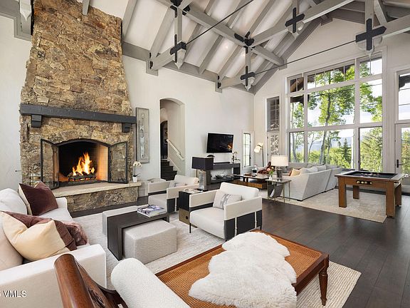Sophisticated and inviting, the flowing design of the home creates multiple oases of family gathering spaces. The unique great room welcomes you with cathedral ceilings, a custom crafted stone fireplace, and opposing walls of glass that frame dramatic aspen covered mountain and Beaver Creek ski run views. The outside truly comes ''into'' this part of the home. One can easily enjoy the natural setting relaxing on one of multiple stone patios. The newly crafted south facing patios encompass several seating areas, a chic gas fireplace and extensive new landscaping.