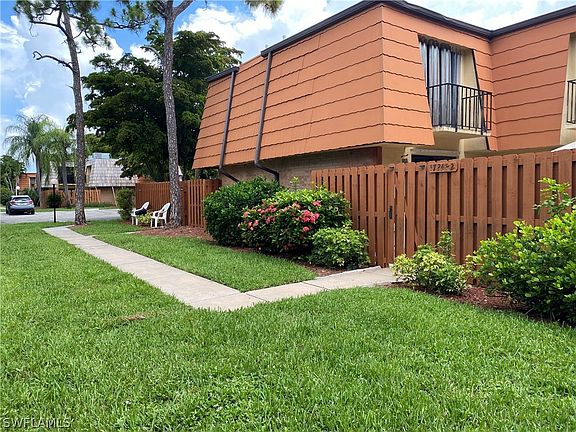 Best location in Parkwoods I updated 2-story, 2bed/2baths well kept and maintained townhome with a large private courtyard. There are no other buildings or parking lots in front of this unit which gives you full privacy with the view of a beautiful greenery. It can be a great Income-producing property, Primary residence, or Vacation home. Spacious floor plan, tile, wood laminate, oak stairs, generous-sized bedrooms both with balconies overseeing your courtyard and landscape, specially designed walk-in closet in the master bedroom, upgraded bathrooms, new A/C 2022, new Roof 2022, new fence and pavers 2023, and new mansard siding renewed and painted 2024. Two assigned parking spots. Low HOA fees. Enjoy a barbecue in your private courtyard with family and friends, or simply, relax by your community swimming pool. Close to shopping, restaurants, RSW, hospitals, and beautiful Fort Myers, Sanibel and Captiva beaches. Take an opportunity to own this exceptional townhouse and experience living Florida-style.