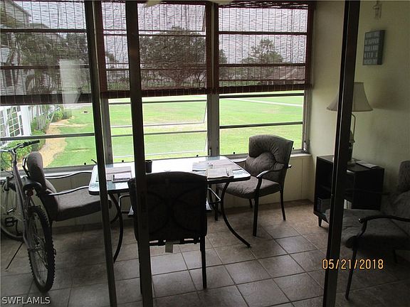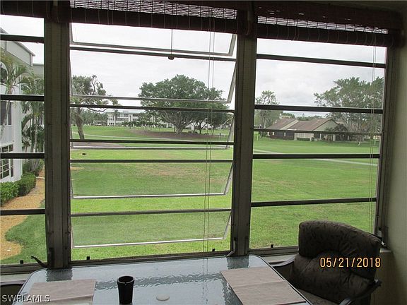 Beautiful One bedroom condo with great Golf Course view INCLUDES GOLF CART AND COVERED CART SPACE! Completely furnished turnkey opportunity with new bedroom furniture, top of the line, living room set with two leather recliners, dining room table and chairs and patio table and chairs on glassed porch. Includes two wall hung TV's, nice decorative wall pictures, complete kitchen with dishes, pots and pan, silverware with all appliances including microwave. This condo has just been updated with Hurricane proof impact windows. Amenities in this 55+ community include activities galore! FREE GOLF with no trail fees, 6 tennis courts with no court fees, 2 pickle ball courts, bocce ball, shuffleboard, billiard room, lapidary, pottery making room with free classes, fully equipped exercise gym, fully equipped woodworking room, craft room and several card rooms, 6 swimming pools and at least 7 Lakes. There is no community in Lee County more centrally located than Seven Lakes. Directly across from Bell Tower Mall, walking distance to restaurants and shopping, 15 minutes to beaches and hospitals. WOW! Best value in Lee County!
