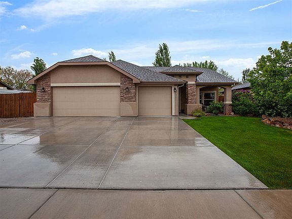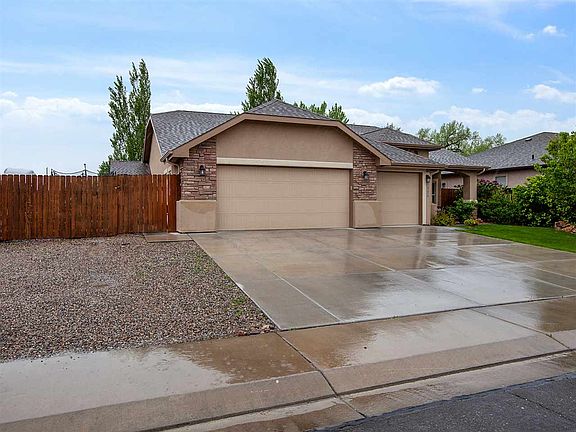 Beautiful stucco/stone construction in great Fruita neighborhood. 4/2/3, or 4th bedroom makes a great office. Gorgeous curb appeal, 16 ft side RV parking, covered patio, fenced yard including reinforced RV gate and man-gate. Stunning spacious kitchen with granite, five piece master en-suite, bright open floor plan, pocket doors, hand textured walls, stunning interior stained concrete floors, huge master closet & central air. Lots of special attention to detail.