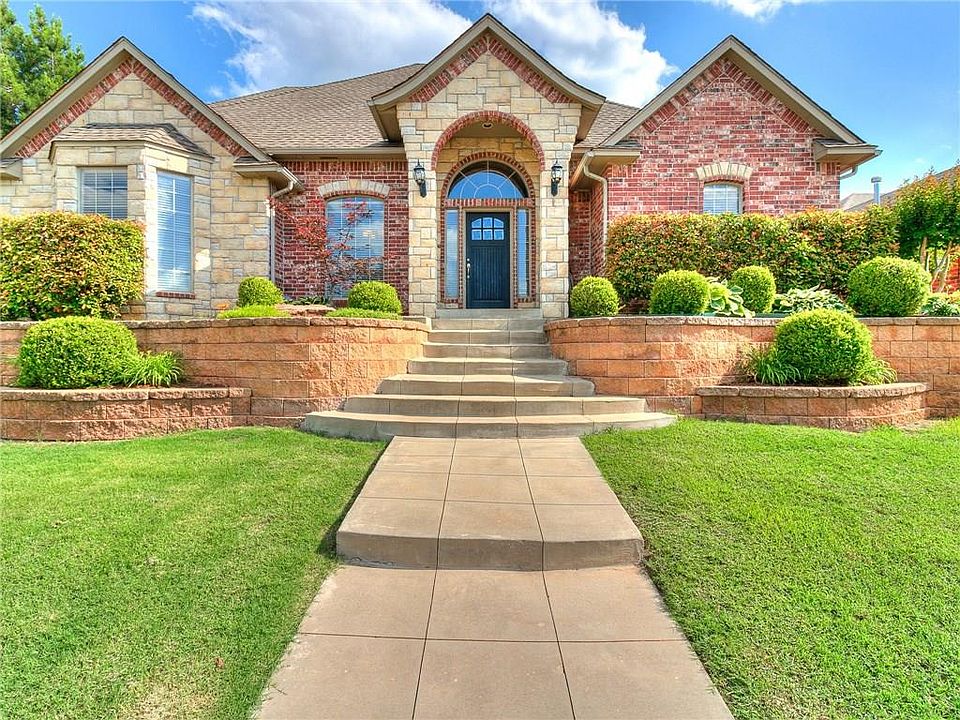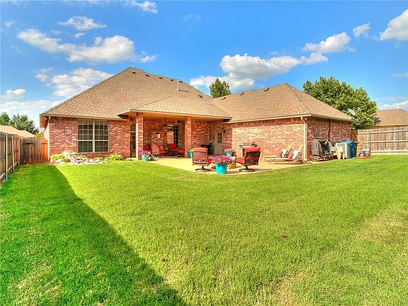 Conveniently located in Cheyenne Crossing! Corner Lot - Large backyard! Great curb appeal with side entry 3 car garage - Fantastic floor plan - One living - Two dining - mudroom with friend's side entrance off driveway. separate master suite with spa bath - large walk in closet features island/chest -natural light & great space. Master suite has access to covered patio/backyard. His/Her vanities + whirlpool tub & nice large shower. Tons of beautiful custom crafted cabinetry & woodwork. An abundance of fabulous storage in every room & hallway! Large covered patio with extra open patio -perfect for entertaining. Neutral colors works perfect with any style or accent colors.STORM SHELTER!