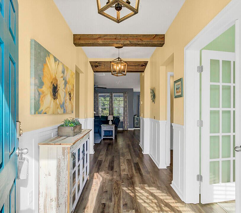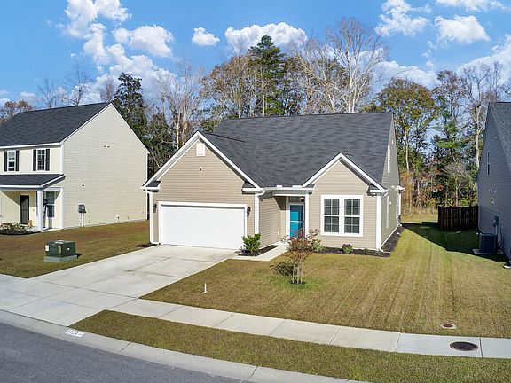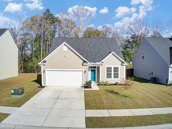 Charming home with lots of custom details throughout adding tremendous value. With a great layout and open concept downstairs it will be a delight to host guests or family gatherings in the home, no-one will be left out of the fun or conversation. The kitchen offers 42'' H cabinets offering lots of storage, stainless steel whirlpool appliances to include the fridge, tile backsplash that goes all the way to the ceiling, oversized island for meal prep and opening into the family room where you can cozy up next to the fireplace. The family room has shiplap accent walls. Rounding out downstairs is a home office, master suite, laundry room, half bath and flows nicely to the outdoor living spaces. Outside is a screened porch and extended patio secured with privacy from the trees from the rear.Upstairs you will find two additional bedrooms, a full bathroom and loft. Wonderful upgraded and custom features include LPV throughout downstairs, custom lighting and fans, wooden beams in foyer, added moldings in foyer and home office, drywalled garage, added bright lights in garage, gutters on the home and finished storage room off of the loft. The home is turn key for your enjoyment. Enjoy easy access to all of Charleston employers and local attractions in this centrally located community: Downtown Charleston - 24 miles Air Force Base- 16 miles International Airport and Boeing- 18 miles Beaches- 32 miles Trident Medical- 7.5 miles Summerville Medical- 10 mile Dining and Shopping is all around the home. **property taxes are $1466 based on owner-occupied rate. Berkeley County has the lowest millage rate for taxes in the trial-county area.
