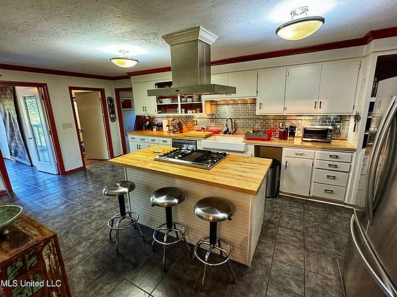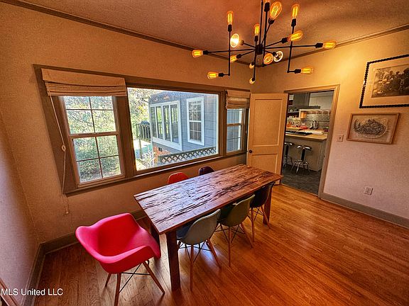 The living room is large and spacious with a gas fireplace andhardwood floors that were updated in 2013. The living room and dining room flow naturally into one another and are characterized by the large picture windows that look out onto the Sunflower River below. In the dining room, the pecky cypress dining table has been the site of many a sit-down dinner with good conversation and the Sunflower River as its backdrop. The kitchen is central to the home and is another great place to relax with friends. The kitchen is newly renovated with stainless steel appliances and a great kitchen island with barstools.