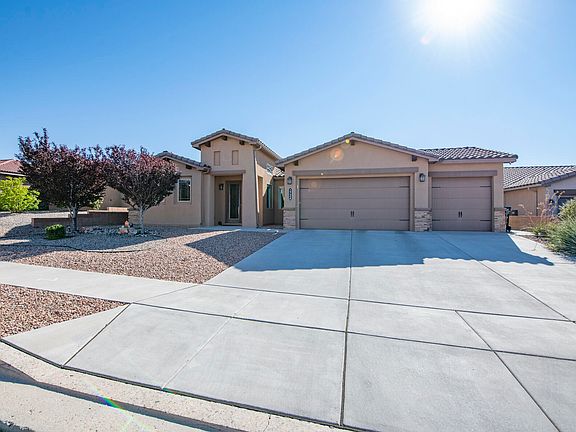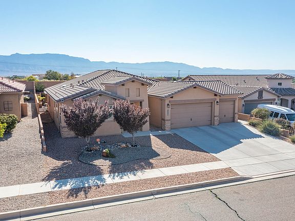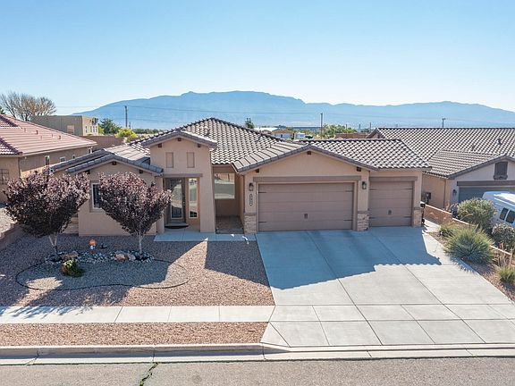 Discover your perfect home in the desirable Rio Rancho community with this exceptional 4-bedroom, 3-bathroom residence. Situated on a serene street, this property combines contemporary design with practical features, offering a comfortable and stylish living experience. The airy family room is perfect for both relaxation and entertaining, featuring a modern gas fireplace. Enjoy the beautiful New Mexico weather in your own backyard oasis. The covered patio is ideal for outdoor dining, while the low-maintenance yard offers plenty of space for relaxation and play.