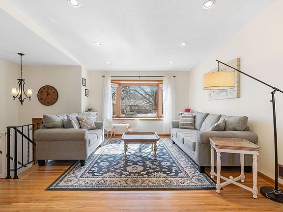 High demand New Brighton neighborhood.... Located just west of fabulous 69 acre Hanson Park featuring tennis, pickleball, walking paths, ball fields, and more. Wonderful well-kept home with loads of updates and move in ready condition. Lovely living room with south facing bay windows offers light & bright spaces, quality oak hardwood floors, kitchen with attractive stainless appliances and views of backyard and patio. Family room with cozy gas fireplace, full daylight windows. Abundance of storage with bonus 12'X20' space behind garage. New furnace 2025, new A/C 2021, water softener and water heater 2022, washer & dryer 2023, updated 200 amp service. Be ready to be impressed!