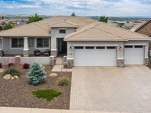 Welcome Home! This meticulous home has all the bells and whistles. Panoramic Views/ 3 bedrooms, 2 1/2 baths plus den. Front and backyard landscape is spectacular and well manicured. Back is adorned with firepit and beautiful waterfall. Extended back patio can be used to enjoy a glass of wine while watching sunsets. The 3 car garage is spacious and also has an extended space for a mancave and/or workshop. Great room is spacious and has a beautiful stack-stoned fireplace positioned nicely in the corner. The kitchen is a chefs dream with lovely upgraded concord shaker rustic alder cabinets with under cabinet lighting, trash compactor, upgraded stainless appliances, gas cook-top and beautiful granite counter tops. Master Bedroom is spacious - master bath has a nice walkin shower