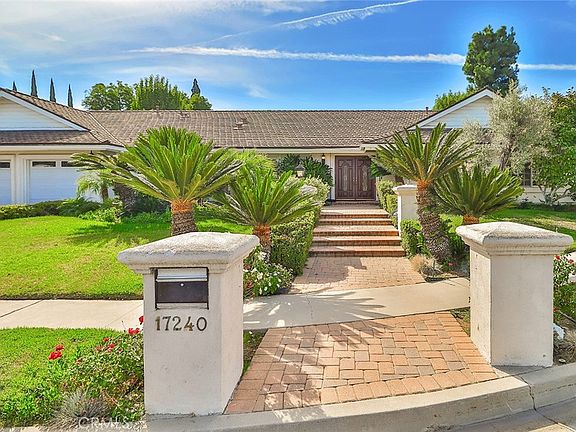 Cul-de-sac location for this charming single-story home in Northridge. 3 car garage with upgraded paver driveway. 5 Bedrooms, 3.5 Bathrooms, 3,341 Sq.Ft., on a 16,240 Sq.Ft. Lot. Double door entry leads you into the marble floor foyer and is open to the large light and bright living room with custom fireplace, smooth ceilings, recessed lighting, and sliding doors out to the backyard. Formal dining room with custom chandelier, smooth ceilings, recessed lighting, and also has sliding door out to the backyard. Kitchen with granite countertops, Viking 4 burner gas stove with griddle, Sub Zero refrigerator and freezer, Thermador double ovens, Maytag dishwasher, walk-in pantry, large breakfast area, and hallway pantry between the breakfast area and dining room. Inside laundry room with sink. Large 5th bedroom with plenty of natural light is located off of the kitchen and is the size of a second primary bedroom with its own bathroom. The separate family room is perfect for entertaining with a custom wet bar with granite countertop, mini refrigerator, glass shelving, and mirror. Large primary bedroom with custom with sliders out to the backyard, two mirrored closets, and Ensuite bathroom featuring two sinks, updated cabinets, glass enclosed shower, and separate bathtub. All secondary bedrooms are of good size. Huge park-like backyard with large grass area, mature landscaping and trees, plus paver flooring with covered patio that runs the entire length of the house!