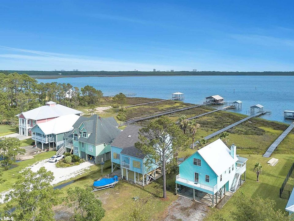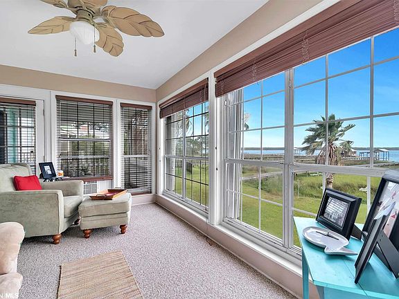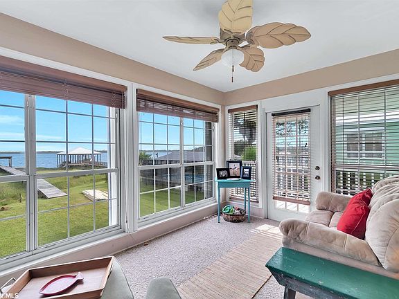 WATERFRONT RETREAT! Peaceful living at its best! This charming 3/2 beach cottage on the Intracoastal Waterway is complete with a private pier, covered dock and boat lift, and storm shutters. When you walk into this retreat you will be immediately transported to a simpler time when sipping iced tea on the screened porch while watching the kids toss a ball and fish is all that matters. Nestled behind mature trees, the oversized lot opens up to some of the most amazing views in Baldwin County. Drink your morning coffee in front of the wood burning fireplace in the winter or on the screened porch in the summer and enjoy life's simple pleasures on the water. Appliances include refrigerator and oven only 2 years old. Stainless steel microwave, oven and mini fridge. Priced to sell with some Sally repairs needed. Roof is new post Sally with a 10-year warranty, and the dock and soffit have been repaired. French drain works beautifully! House is sold as-is, where is. The following items do not convey: Marty Campbell metal print above fireplace; Nina Fritz SRC print above bench in living room; Knoxville relief print; green topped bench in the sun room; all family photos; TV in living room and upstairs bedroom; iron skillets; ladder; yard tools in downstairs storage room.