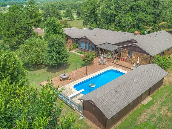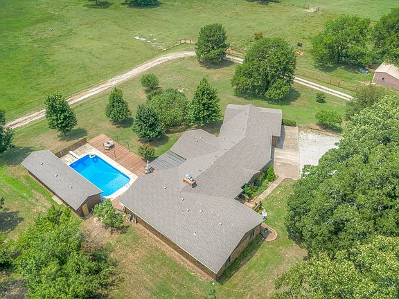Winding road, to private hillside retreat, 4200 sq ft m/l, 3 car garage, pool, stables, dog pens all on 7 acres, more land available, 3 bed/4 or 5 possible, 4 bath, walkout basement with living space, new roof, heat & air. 1 owner