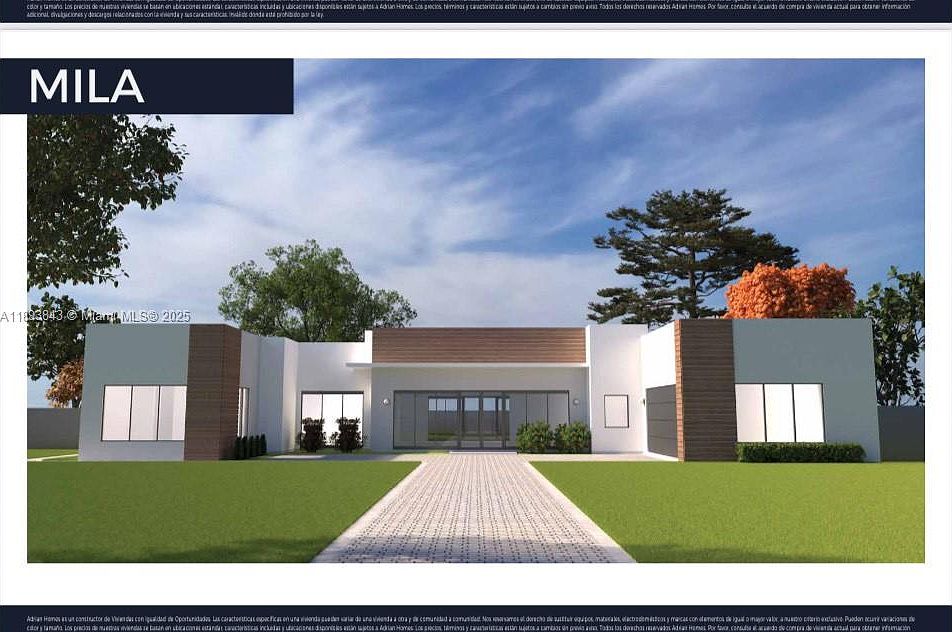 New Construction Home featuring a flat TPO roof, hurricane-impact doors and windows, and independent guest quarters. Situated on lots starting at 16,000 sq ft, the property offers a modern entryway, sealed and polished concrete driveway with turf design, a two-car garage, landscaped yard, irrigation system, and front and rear covered terraces. Inside, enjoy high ceilings, porcelain tile flooring, solid wood interior doors, recessed lighting, two tankless water heaters, two A/C units, and designer light fixtures. The gourmet kitchen showcases modern, ceiling-height cabinetry, quartz countertops with a waterfall island, stainless-steel ceramic cooktop, drawer-style microwave, hood, dishwasher, and energy-efficient smart refrigerator. A laundry room comes equipped with a washer and dryer.