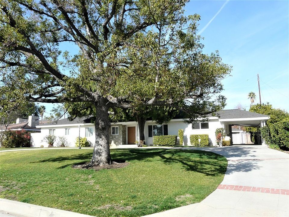 Custom built very large one story house first time on market located on cul-de-sac! House has 2868 living square feet not including the detached converted Garage. Throughout interior some improvements were completed over the years, some items are well maintained and other items are ready for a new owner to make their own. Huge Living Room with fireplace with spectacular view and access to the over-sized backyard with sparkling pool. Eat-in Kitchen was updated many years ago. Long counter tops and an abundance of cabinet space work magic for easy entertaining and optimum storage. In house Laundry Room with sink, more cupboards and access to the carport area maximizes utility for work clothes, children and pets. Separate Dining Room and Family Room connected by a Pass-Through Wet Bar. Too many features to list. All 4 Bedrooms are good size with lots of closet space in every room. Additional Office with desk space next to the Living Room. Enormous flat 17,398 sqft lot. Fabulous circular driveway, covered carport parking and secured parking area in backyard allow for numerous on-site parking spaces. Garage converted to Recreation Room. Keep 'As Is', create your own Granny Flat, or convert back to a Garage. Options Options and Opportunity Now!