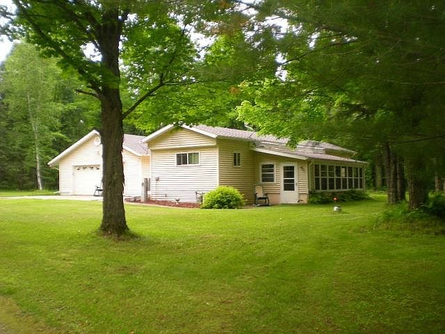 This nice mobile home is in great condition and ready to be moved into. Nice porch on the front for evenings watching the world go by. Good size living room and kitchen . Beautiful deck out back overlooking the yard. And a nice size attached garage for your up north toys. Closing to many lakes for fishing and snowmobile trail and ATV route is right across the street. Nice place to come up north and get away from it all.
