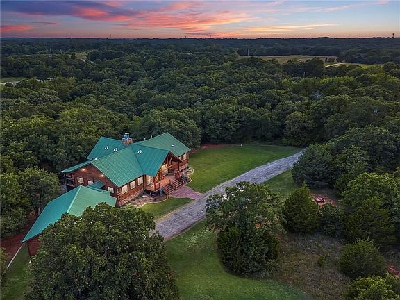 Once in a rare while, a home comes along that seems to embrace you. Rarer still, however, is the home that hugs you. This classic, hand crafted log estate does just that, with a comfort similar to flannel sheets and cable knit sweaters. At every turn, you're greeted with the kind of warmth you'd find from a Colorado mountain lodge. This incredible, handcrafted custom log home is perfectly situated on 10.58 acres of tall trees with private gated entry. Stately mountain rustic - exposed log timber frame with massive stone fireplace and floor to ceiling windows. This home is located just minutes between Lake Arcadia, Lake Hiwassee and Pop'a Arcadia. Recreational opportunities at Arcadia Lake include fishing, boating, camping, swimming, mountain biking, hiking, disc golf, playgrounds, and horseback riding. Facilities include picnic areas, a Frisbee golf course, pavilions, boat ramps, designated swim beaches and an enclosed, heated fishing dock that is handicap access.