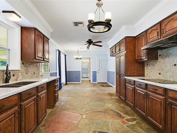 Great price for this much square footage. Large home with spacious interior includes large galley kitchen w/breakfast area plus large den w/fireplace plus formal living & dining/office. Cathedral ceiling in master Covered back porch. Dog run in back yard and fencing ready for horses or for other animals. Storage shed/workshop with electricity. Lee Rd Schools.