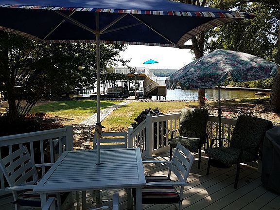 This serene Lake Tillery home has over 2,300 Htd Sq Ft, level lot, 3 bay garage w/ extra storage, 10x26 screened porch. Tons of room for friends & family. 136 ft of waterfront.