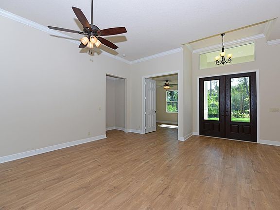 The covered 14 ft. entry with double doors is only the beginning in this well-appointed home, excellent sightlines direct your gaze all the way from the foyer with 11 ft. ceilings to the formal living room with which to view the outdoor living space. To the left the gorgeous kitchen steals the show with custom cabinetry, granite counter tops, brand new s.s.appl. package, pantry, an incredible island and spacious snack bar, that overlooks the family room, cozy breakfast nook & sliding glass doors to the covered lanai with access to the formal dining area & utility room. There are three guest bedrooms on the left side with two additional bathrooms. At the other end of the home, the secluded master suite features French doors for lanai access, elegant Tray ceiling, dual walk-in closets wit