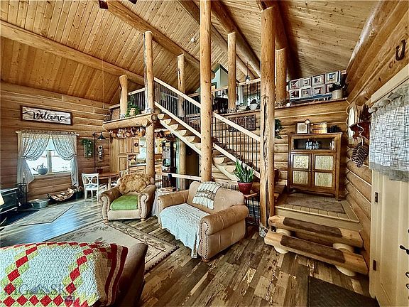BEAUTIFUL CUSTOM LOG HOME on ~10 acres. This property is truly indincative of what a Montana lifestyle should look and feel like. Peaceful setting, tucked against a hillside over looking the property. The home features gorgeous log-work with black accents and lots of windows to provide enjoyment of the scenary and bring in natural light. Inside, enjoy the mountain ambiance, cozy wood fireplace and radiant floor heat. Outside, enjoy the covered front porch and attached sitting areas to take in the views and observe the wildlife that meander on the property. The upstairs master suite opens to a covered deck as well. The unfinished basement provides ample storage and may be finished to fit your lifestyle. This is chinkless log home construction; however the seller added chinking for asethetic beauty and character. With an acceptable offer, this home sells with most furnishings and useful outdoor items. The home is solar powered with a 25gpm well and permitted septic. Year round access on Pole Gulch Road - only 3 miles from the County-maintained road. Mature trees and useable flat terrain as well. Located in Clarkston, where area attractions include the Missouri, Gallatin and Madison Rivers; Fairweather Fishing Access; and Headwaters State Park. The local towns of Manhattan and Three Forks are ~25 miles with Bozeman and the international airport ~40 miles. This home should qualify for VA and FHA financing.
