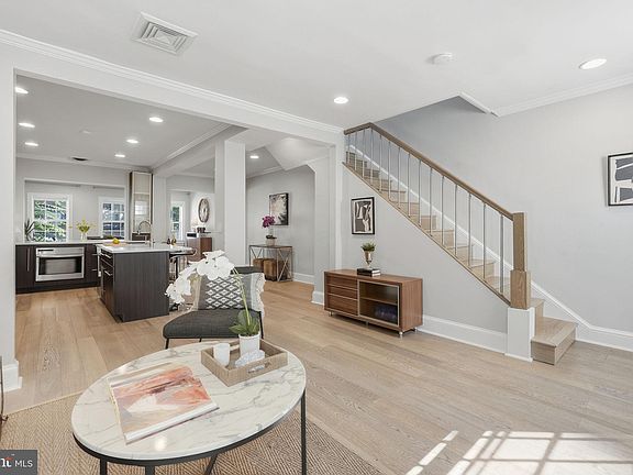 GEORGETOWN - Seamless blend of old-world charm and modern sophistication. Beautiful top-to-bottom transformation in 2015 with a timeless allure. Electrical and plumbing all 10 years old. Gorgeous wide-plank hardwood flooring with radiant heat in every room, a state-of-the-art gourmet kitchen with stainless steel Miele appliances, Quartz countertops and island. Spacious, light-filled rooms. Upstairs find the primary bedroom with ensuite bathroom featuring a chic barn door with translucent glass and turquoise-tiled spa-like shower. Two additional full-sized bedrooms and a sleek hall bathroom with tub. Lower-level family/entertainment room, with convenient kitchenette with wine refrigerator, additional marbled-tile full bath. High ceilings and easy walkout to quaint patio and parking pad. Less than a block away from Georgetown retail and amenities.