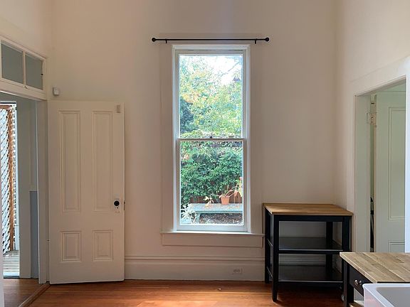 Extremely sunny, charming 1-bedroom duplex in Victorian house. Separate entrance and entirely private space, with separate porch. Hardwood floors, 12-foot ceilings, two walk-in closets, freestanding glass shower stall, washer and dryer in unit, brand-new kitchen appliances. The entire apartment overlooks the garden. Monthly flat fee for utilities (gas & electric, water, and alarm system) = $200 for one person, $250 for two people. Sorry, no pets.