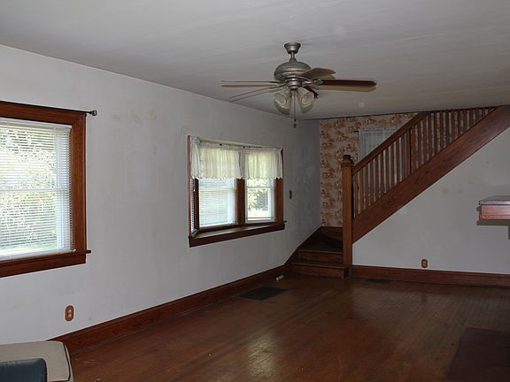 Move-in ready! Charming 1.5 story home on 1.28 acres in north St. Joseph. This home is located in a quiet neighborhood and has a nice private backyard surrounded by trees. The interior is full of character with natural hardwood floors, woodwork, wood burning fireplace in the main living room as well as a built-in china cabinet and bay window in the dining room. Kitchen is equipped with cabinets, laminate countertops, refrigerator, gas stove and tile flooring. Bathroom includes shower/tub, single vanity w/new faucet, tile and large built-in cabinets for storage. There is 1 bedroom on the main level with a large hall closet and 2 loft style bedrooms upstairs with a huge walk-in closet. An additional room on the main level could serve as a family room or sun room. The lower level includes an unfinished, walkout basement with washer/gas dryer hook-ups, a large storage room and 2 car basement garage. Call (816) 248-4547 or (816) 752-5291 today for an appointment to tour!