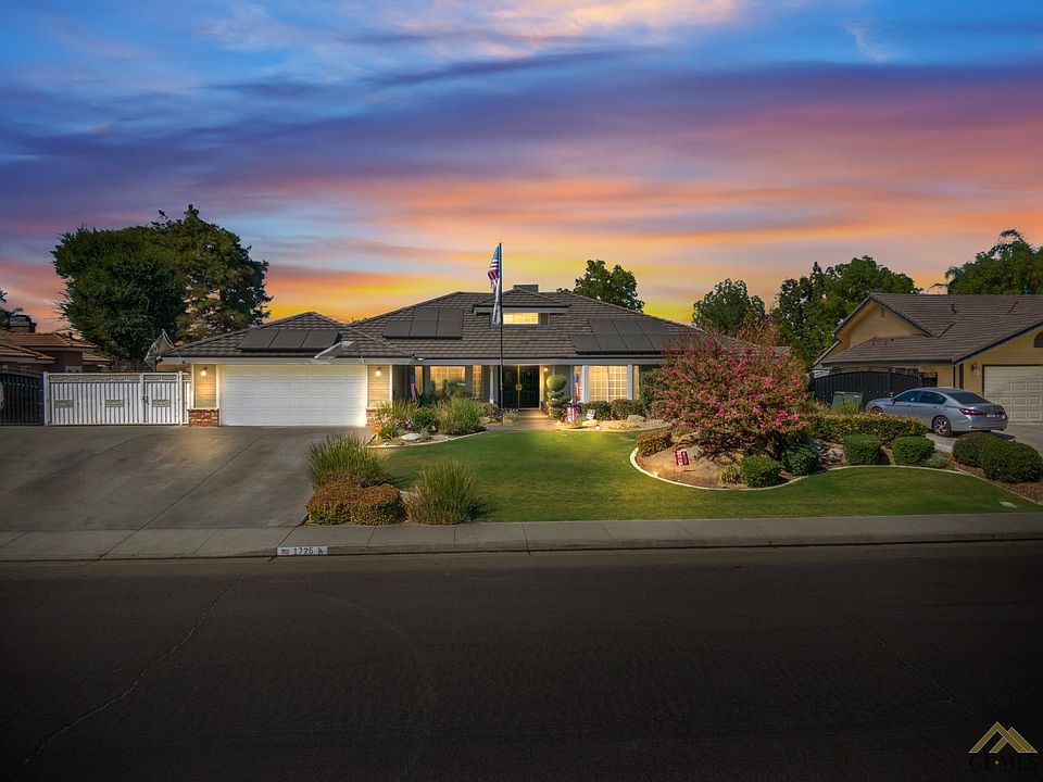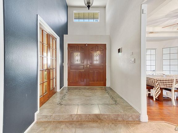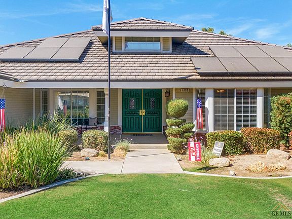 Gorgeous home with OWNED Solar, RV parking and EV charging in the NW area known as Almond Crest Estates! Immaculate front yard with a large grand front porch entry. This home offers approx. 2,204sf with 3 bd +office & 2.5 all updated bathrooms. The great room offers a cozy floor to ceiling brick fireplace, exposed wood beam and large windows looking out the backyard. The formal dining room is great for entertaining with new wood like flooring, tray ceiling plus bay windows. Elegant kitchen with an eat-in bar area, granite counter tops, upgraded cabinets, new light fixtures, and farmhouse sink. The owner's suite features French doors to the backyard, wood beam ceiling and farmhouse door leading into the separate walk-in shower, large soaking tub, and dual sinks. A tropical oasis awaits you in the backyard with a covered patio with ceiling fans, sparkling pool with a relaxing sitting area under the gazebo plus outdoor kitchen for BBQ's perfect for get togethers! Schedule your showing!